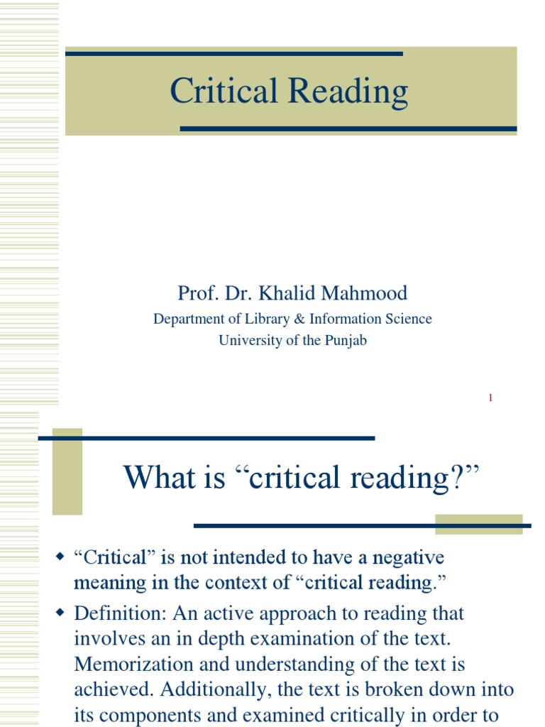 What Is The Definition Of Critical Reading